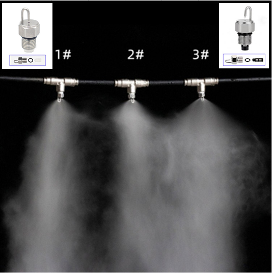 Why does the high-pressure impact atomising nozzle deliver such a remarkable effect? This nozzle features an integrated stainless steel construction with a filter mesh at its base, serving as the final filtration barrier before atomisation. A ruby disc is embedded at the nozzle's apex, its micro-orifices acting as the atomisation points. Water pressurised by the host unit is ejected through these orifices, striking the impact pin to disperse into a fine mist. The ruby impact nozzle produces atomised particles ranging from 5 to 15μm (micrometres). Should clogging occur, it can be cleaned. If the top impact pin is damaged, the nozzle becomes inoperable and requires replacement; thus, it must be handled with care during installation. This nozzle is available in multiple models, each offering distinct spray effects. Selecting the appropriate nozzle for the site is essential to achieve optimal results.